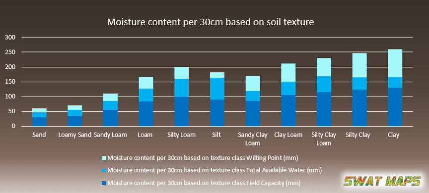 Water is a critical element in steering decision making as it underpins several drivers of crop yield e.g. salinity, organic matter, pest and disease locations, nutrient availability, and nutrient efficiency. Not all the water held within the soil column is available to plants. While SWAT MAPS provides an excellent perspective on intra field variability, SWAT WATER adds tools relevant to the availability of water within the soil column and the changes in the soil moisture availability over time. With the addition of SWAT WATER, agronomists and famers are empowered with tools to understand if and where soil moisture is optimal for plant growth.