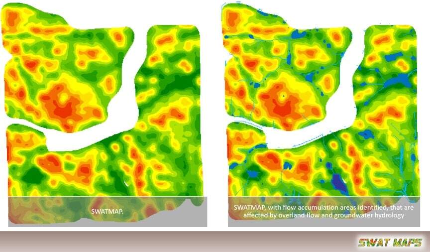 Variable rate technology, such as SWAT MAPS, provides the perfect platform for mapping spatial variability. An understanding of the dynamic nature of soil moisture in response to topography, soil physical characteristics (e.g. texture), crop moisture demand (e.g. crop stage and type) and associated climatic conditions can further guide management decisions with regards to seeding rates and/or fertilizer applications and pest and disease control. For example, topdressing only those locations with yield potential above the estimated/forecast yield potential provided for the fertilizer prescription. The opposite effect would be in wet years, not fertilizing saturated parts of the field in which there is little or no crop due to excess moisture.