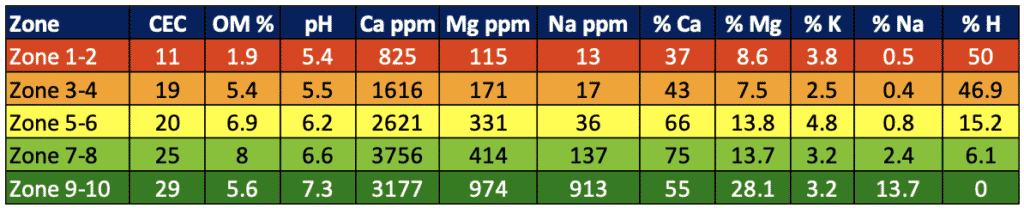 Figure 1. typical SWAT zone trends in soil properties related to pH.