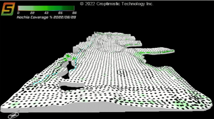If kochia is left uncontrolled, at maturity and with wind the tumbleweed will spread seeds throughout the field. With each kochia plant producing at least 15,000 seeds, dense kochia patches with low crop competition can produce millions of seeds per square metre (Canola Council, 2023). However, with proper management, growers can reduce the soil seedbank and prevent kochia from reaching maturity. On top of that, farmers who bring precision ag tools like SWAT CAM into their operation find managing kochia to be a whole lot easier.